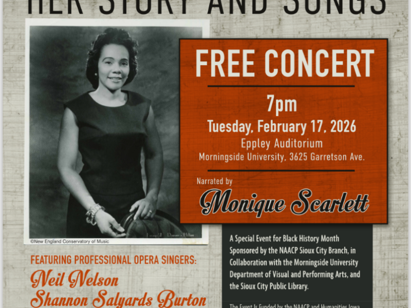 Sioux City NAACP hosts free Coretta Scott King program with live narration, music and Civil Rights storytelling at Morningside University.