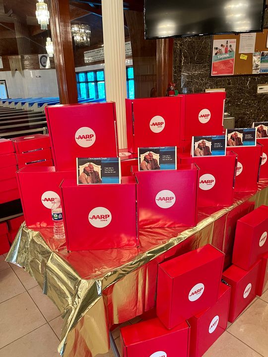 AARP Iowa donated 100 care kits to vaccine clinic participants. Photo by Black Iowa News. |