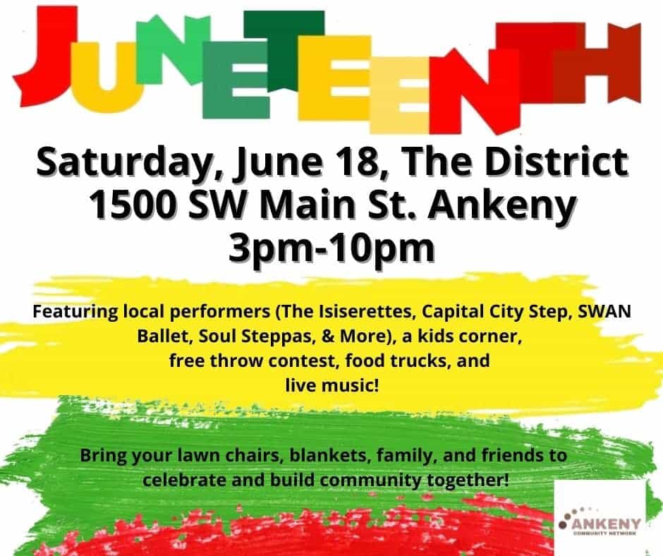 “Juneteenth is a day that we celebrate not just the end of slavery in the U.S. but also honor our ancestors, celebrate our families, honor the contributions of Black people and showcase the strength and diversity of our stories, experiences and lives as residents of Ankeny, of this state and as Americans,” said Ankeny Community Network event organizer Deshara Bohanna.