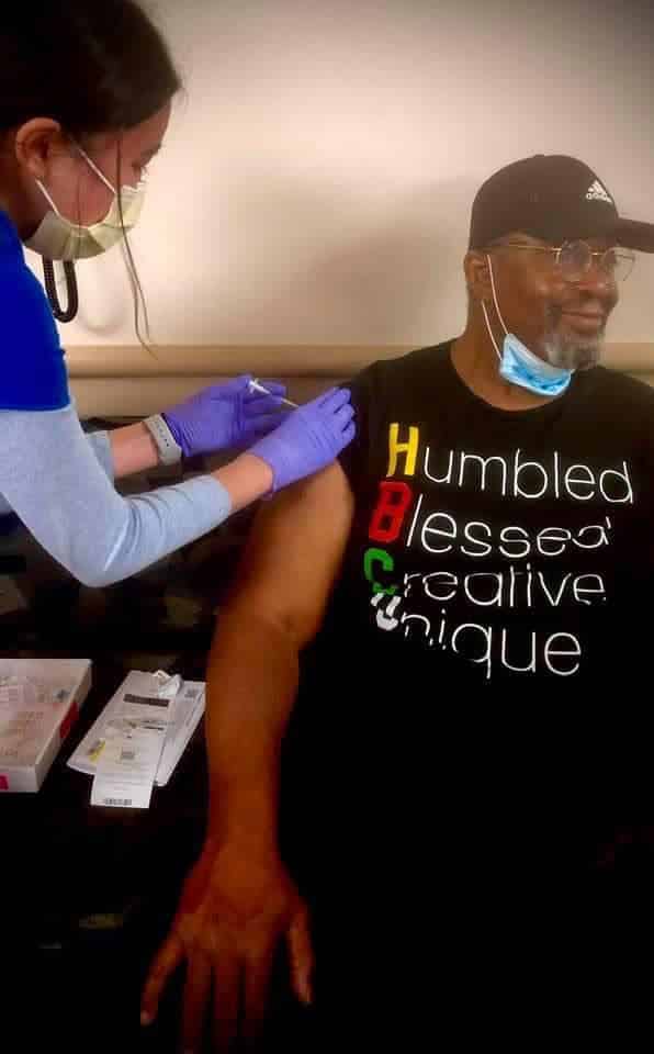 Wayne Ford, a community consultant for Broadlawns Medical Center, former Iowa state representative and founder and former executive director of Urban Dreams, received three vaccinations recently for shingles, flu and a COVID-19 booster shot. Photo special to Black Iowa News. |