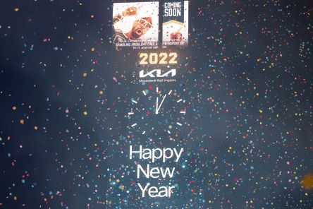 Confetti flies in the air at Times Square to mark the New Year in New York City on January 1, 2022. (Photo by Yuki IWAMURA / AFP) (Photo by YUKI IWAMURA/AFP via Getty Images)