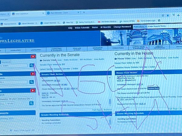 - A derivative of the N-word was scribbled on Womble’s screen share of the Iowa Legislature home page